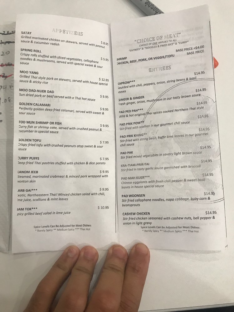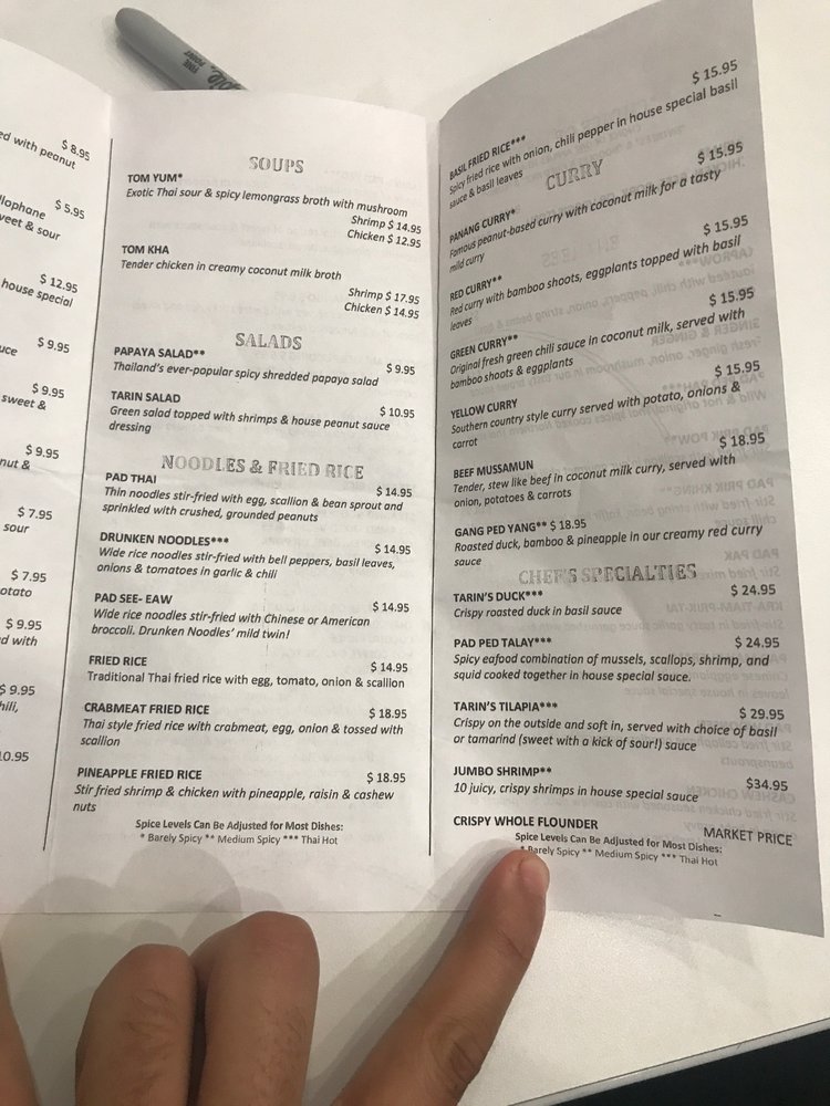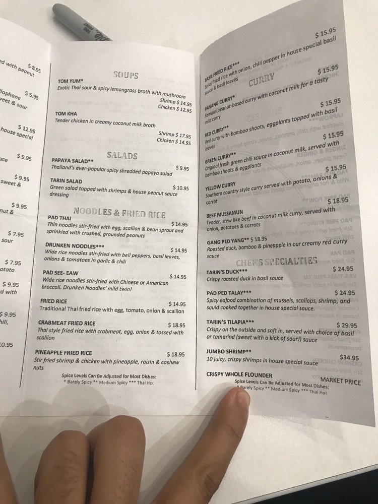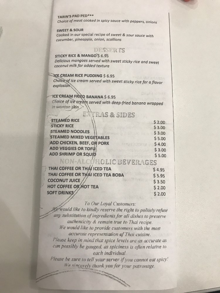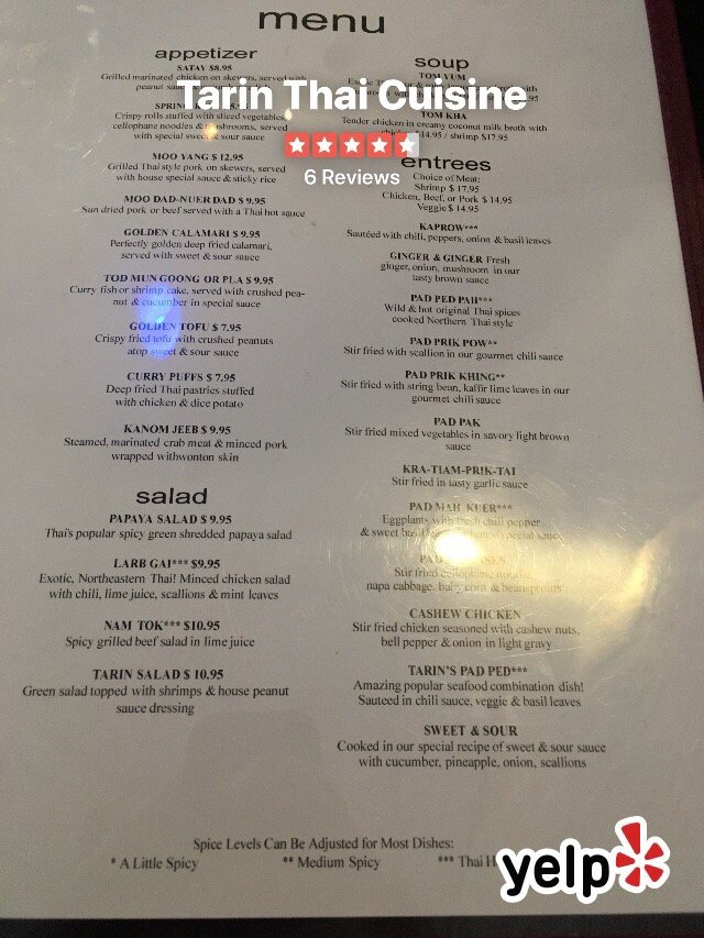 Tarin Thai Cuisine Menu